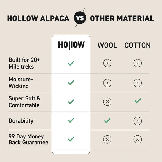Softer than wool and more comfortable than synthetics, alpaca delivers premium comfort without the itch—no matter how far you go.